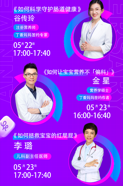同期,在5月18日~28日期间,丁香妈妈App也将上线一系列专业知识科普活动和用户专享补贴。专业团队严选品牌好物和明星课程,为-1~6岁阶段的母婴人群提供高质量的内容与服务,一站式解决新手父母们的育儿需求。